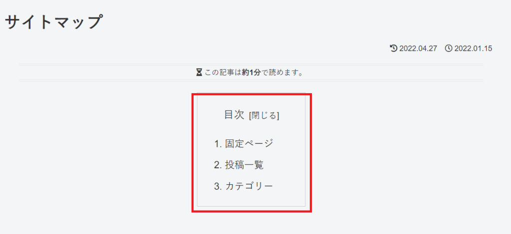 無料のテーマ、且つプラグインを活用せずにサイトマップを作成できるってありがたいですね!
