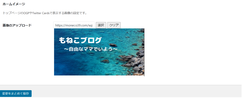 「Open Graph protocol」のことで、SNSに出力する画像の設定をするところになります。